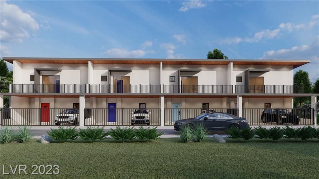 Amazing, new construction 4-PLEX Boasts 10 FT ceilings with an open floor plan, kitchen island, modern finishes and full stainless steel appliances. This townhouse style home features dual masters and a large private patio to enjoy the fantastic views of the Las Vegas valley. Construction scheduled to begin in late 2023. There will be two 4-plexes built on this site and each 4-plex is for sale. Building B is in escrow. Only this building - building A - remains available.
